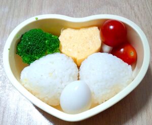 While I’m not the best at it, it turned out pretty charming. My daughter happily gobbled it up, saying, “It’s a snowman!” and finished the entire thing with a big smile. The feeling of accomplishment you get when they eat everything, no matter what, is just the best. (We ate this bento together on a day out during summer vacation.)