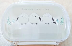 Recently, their popularity has exploded, especially with the release of so many mascots and goods. When I was at Seria (a 100-yen store), I saw a lunch box with a long-tailed tit illustration and just had to buy it on impulse.